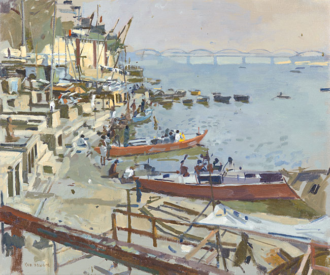 The stunningly vibrant works of Ken Howard, Patrick Cullen, Peter Brown and Neale Worley, were mostly done while painting en plein air. The result proves afresh that India captivates. Travelling together with their paints and easels the four artist friends worked in Varanasi exclusively and the results of the trip will be on show from Oct 14th to Nov 7th at Indar Pasricha Fine Arts, 22 Connaught St, London W2 AF
