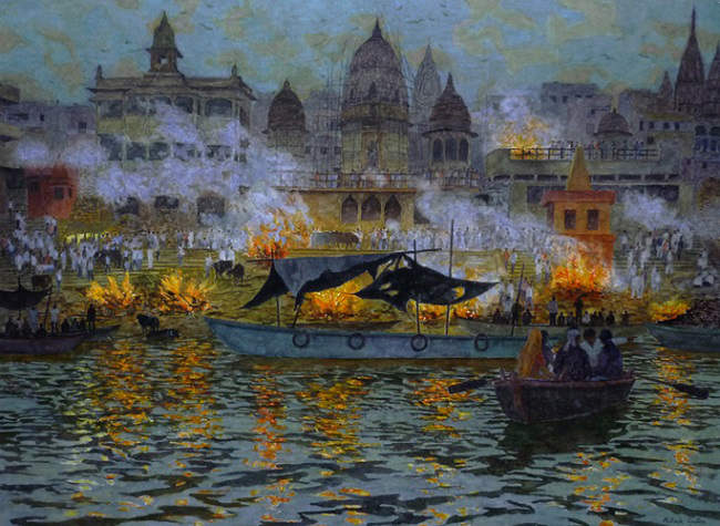 The four artists chose Varanasi as their subject as it is among the world's oldest continually inhabited cities. After visiting this fabled city American author Mark Twain wrote: "It is older than history, older than tradition, older even than legend, and looks twice as old as all of them put together." In the 19th and the first half of the 20th centuries Varanasi was considered by Europeans to be almost an abomination, misunderstood by them and a cultural threat, it is now seen as a city which is the accumulation of millennia of religious culture, a culture that is more understood.